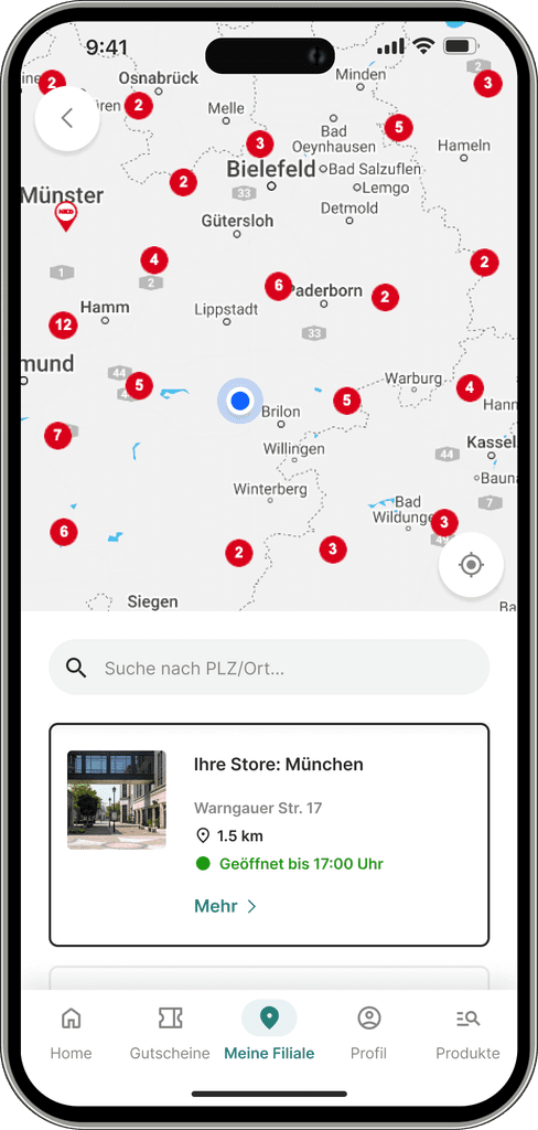 Customers can discover nearby stores, get known about their currently running promotions, check the operating hours, navigate with the Maps route or locate the parkings and bus stops.